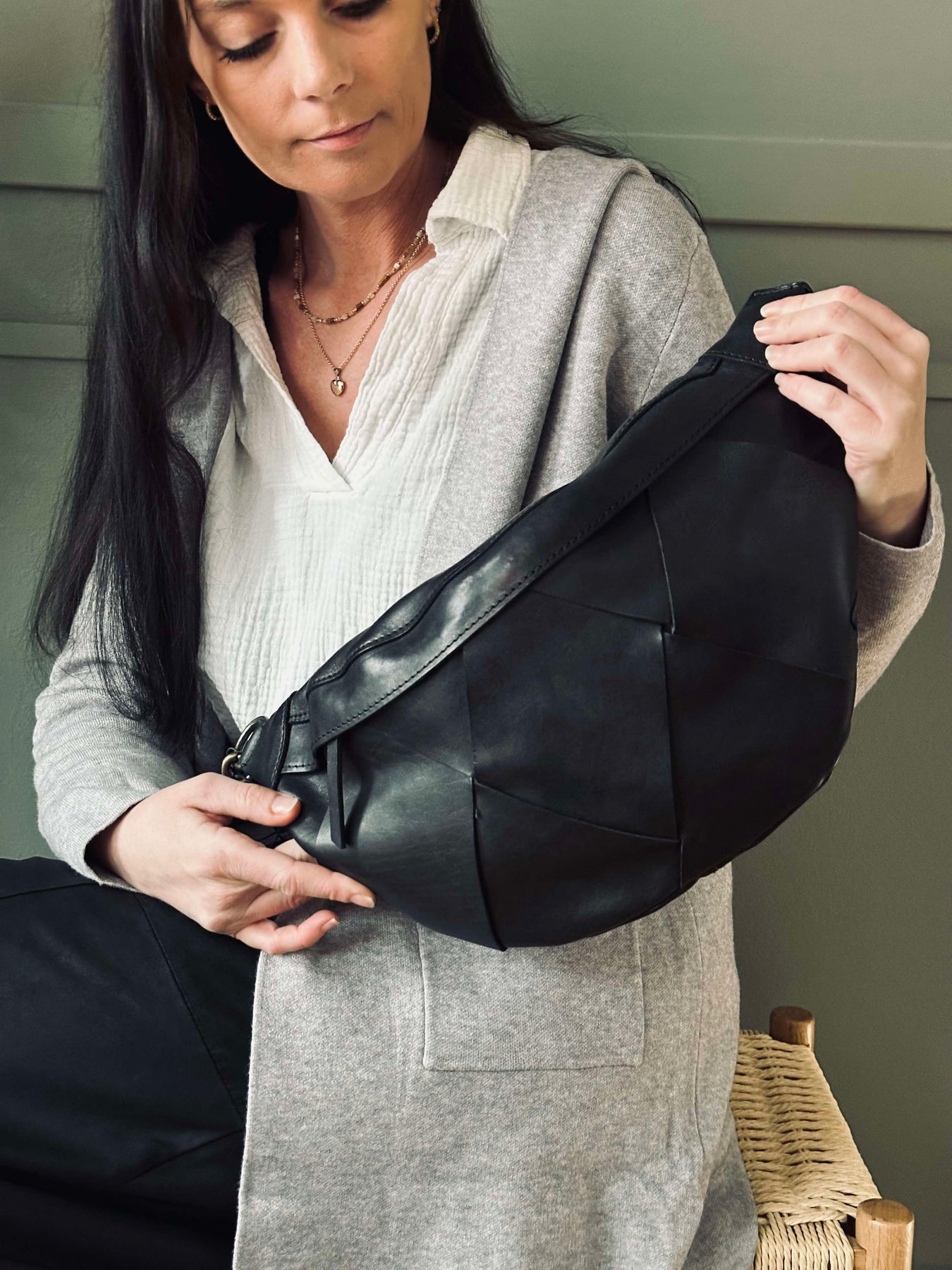 Eksklusiv håndflettet bumbag – Black | Luksuriøs og Tidløs Håndværk i Kalveskind