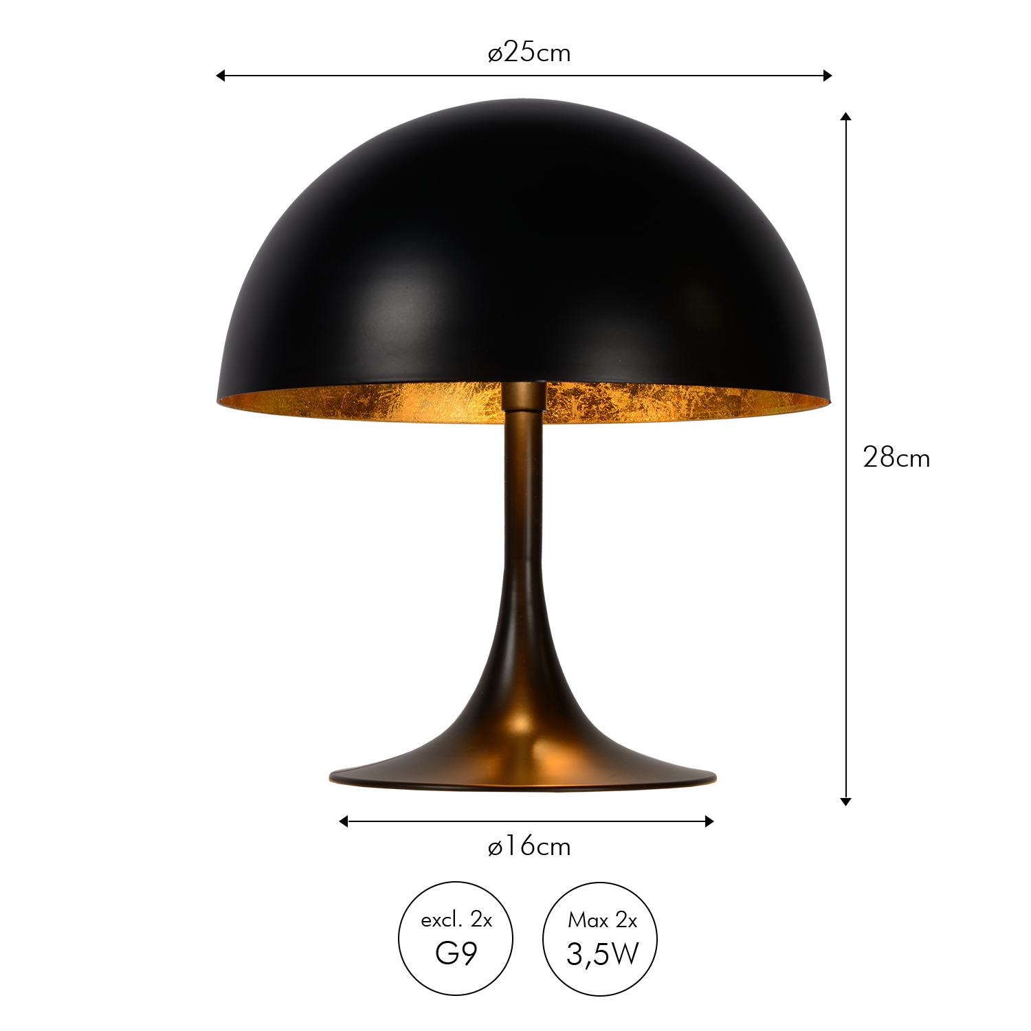 Tilføj en premium stemning til dit hjem med Braga Bordlampe, udført i elegant sort metal og med indvendig finish i varm guld, der fremhæver lysets varme nuance. Den skulpturelle form og proportioner gør lampen til et udsagnsstykke på natbordet, konsollen eller sofabordet – hvor design og funktion mødes.