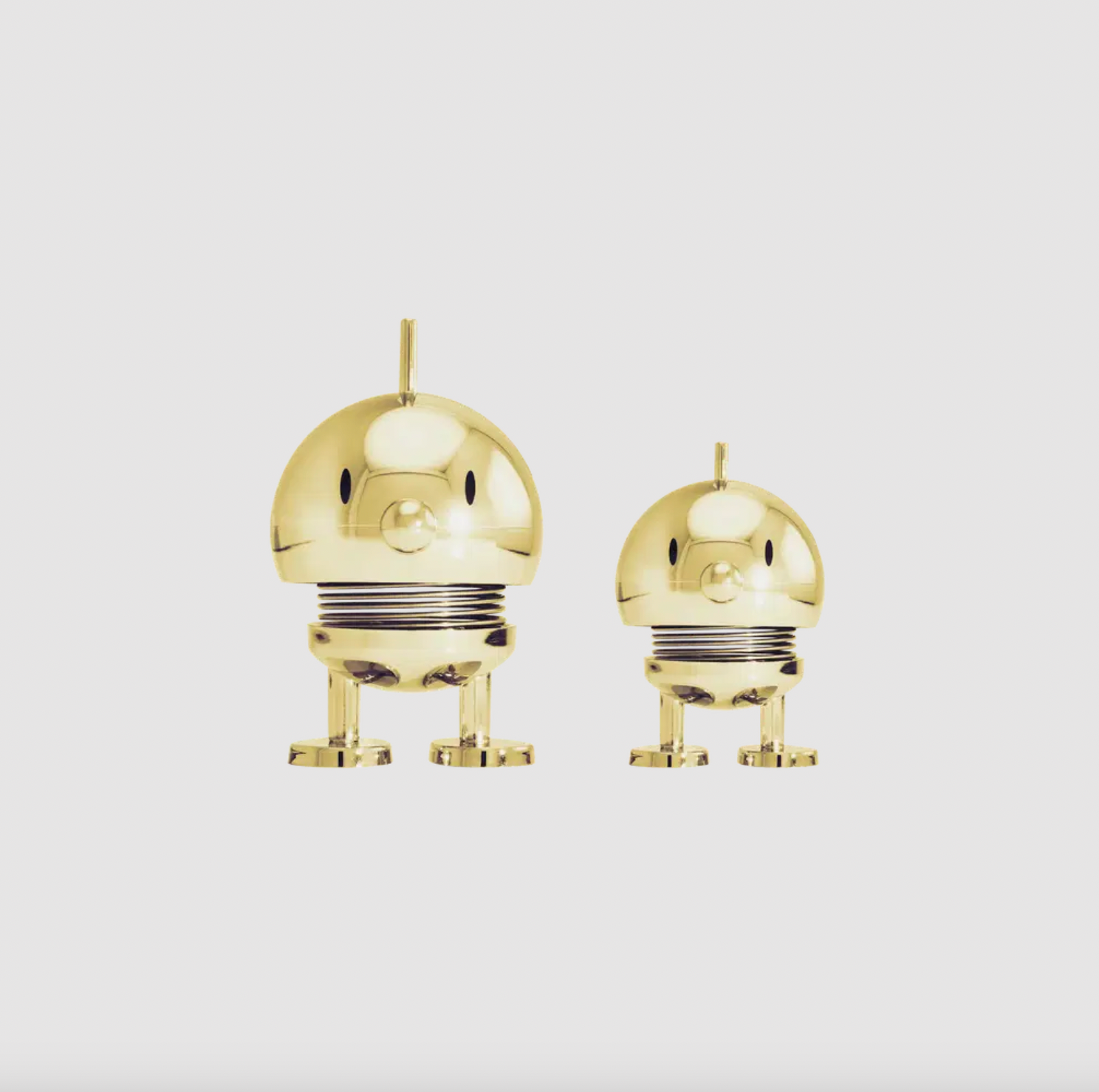 Hoptimist Bumble Sæt i Limited Edition består af to dekorative figurer i guld: en XS (5,8 cm) og en S (7,6 cm). Disse små, hoppende figurer bringer glæde og optimisme til ethvert rum. Deres spejlende overflade reflekterer omgivelserne og tilføjer et legende, men stilrent element til din indretning. Perfekt som gave eller som en personlig detalje i hjemmet.