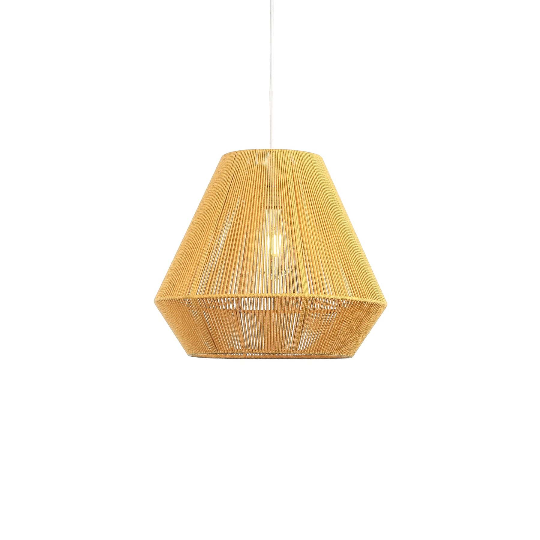 Cadiz Mustard Pendel Ø35 tilfører varme, naturlig tekstur og blødt lys til dit hjem. Fremstillet af fint vævet rebmateriale, skaber den en behagelig glød, som er ideel til spisestue, stue eller hyggelige hjørner. Dens sennepstonede farve giver karakter og visuel interesse uden at dominere indretningen.