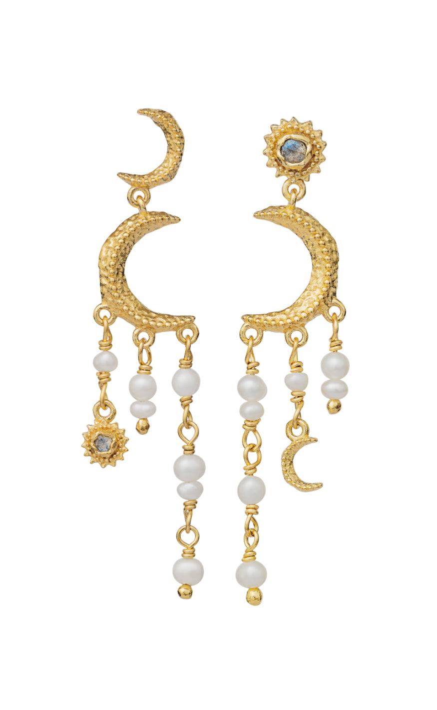 Maanesten Astrea Øreringe – Forgyldt Sølv med Labradorit og Ferskvandsperler