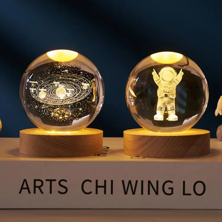 MagicGlow er en elegant natbordslampe designet til at bringe ro og hygge til dit soveværelse eller børneværelse. Den 6 cm runde glaskugle lyser med et varmt, dæmpet skær fra en træfod, hvilket skaber en beroligende atmosfære perfekt til afslapning og drømme.