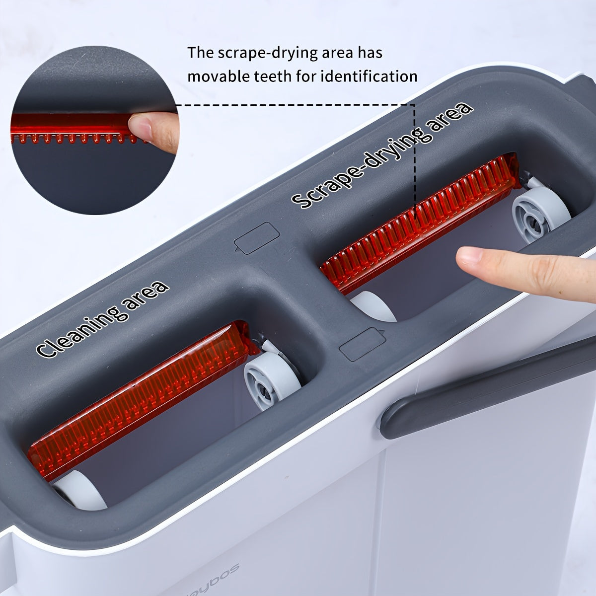 ✅ Brugervenligt design – Den smalle spand og flade moppe gør rengøringen lettere og pladsbesparende.