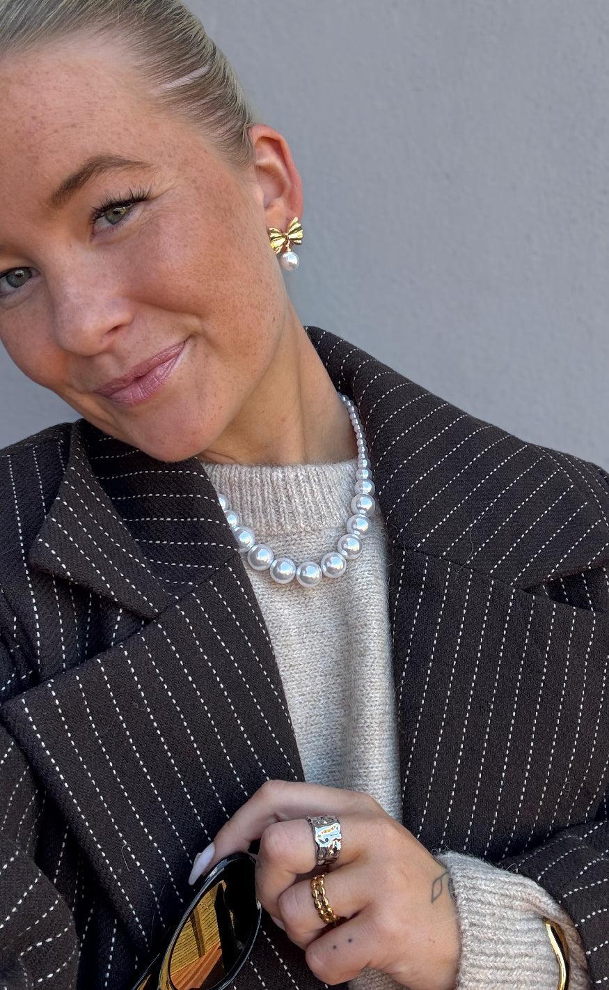 Tilføj et strejf af elegance til dit outfit med Christina Bow Øreringene fra Smykkeli Copenhagen. Fremstillet i rustfrit stål og belagt med en rig guldtoning, prydes disse øreringe af et delikat sløjfedesign, der udstråler en kombination af femininitet og sofistikering. Deres tidløse appel gør dem til et alsidigt tilbehør til både hverdag og særlige lejligheder.