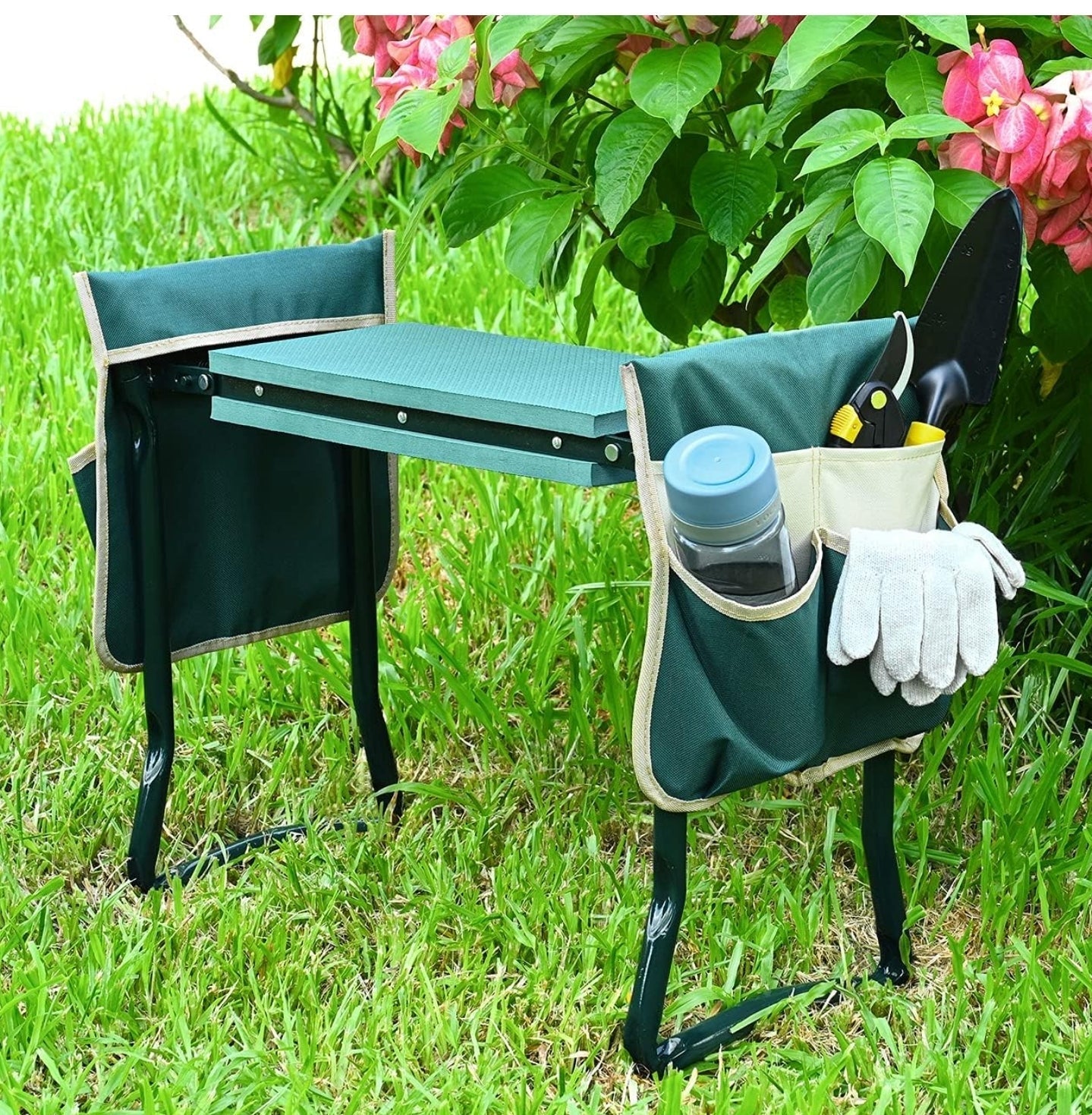 - Detaljer: Hold dig organiseret med vores haveskammel, som leveres med to rummelige værktøjslommer. De er perfekte til opbevaring af alle dine vigtige haveredskaber som f.eks. murerskeer, beskærersakse og handsker. Når dine redskaber altid er inden for rækkevidde, kan du fokusere mere på dit havearbejde og mindre på at lede efter fejlplacerede ting.